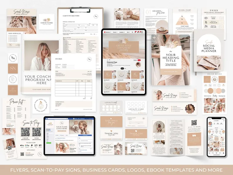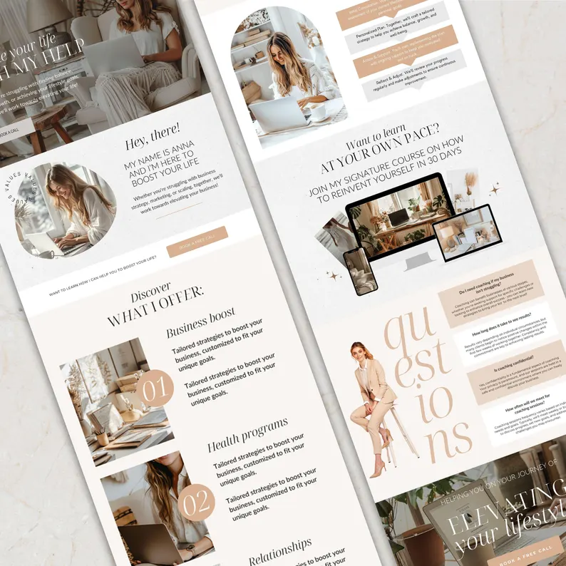 Launch your entrepreneurial journey with ease by purchasing this all-in-one coaching business template kit! This kit includes everything you need: a complete branding toolkit with all the template designs you could possibly need; a fully functional, ready-to-use Wix website; and a Canva landing page.