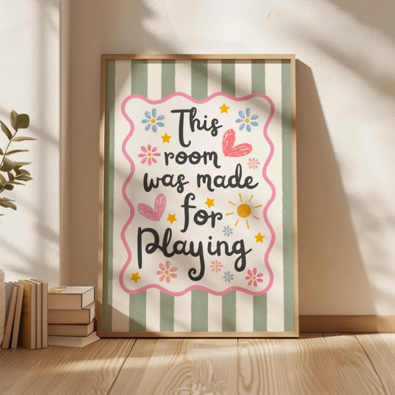 Brighten your child’s space with this “This Room Was Made For Playing” printable-designed in sage green theme. Perfect for nurseries, kids playrooms, or baby room decor, this sweet wall art encourages positivity while adding style. A heartfelt and easy-to-download piece that makes a thoughtful new baby or birthday gift.