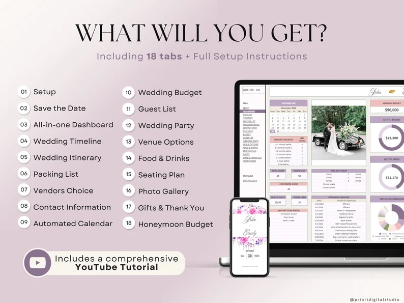💻 This wedding planning spreadsheet includes 18 tabs + complete setup instructions: