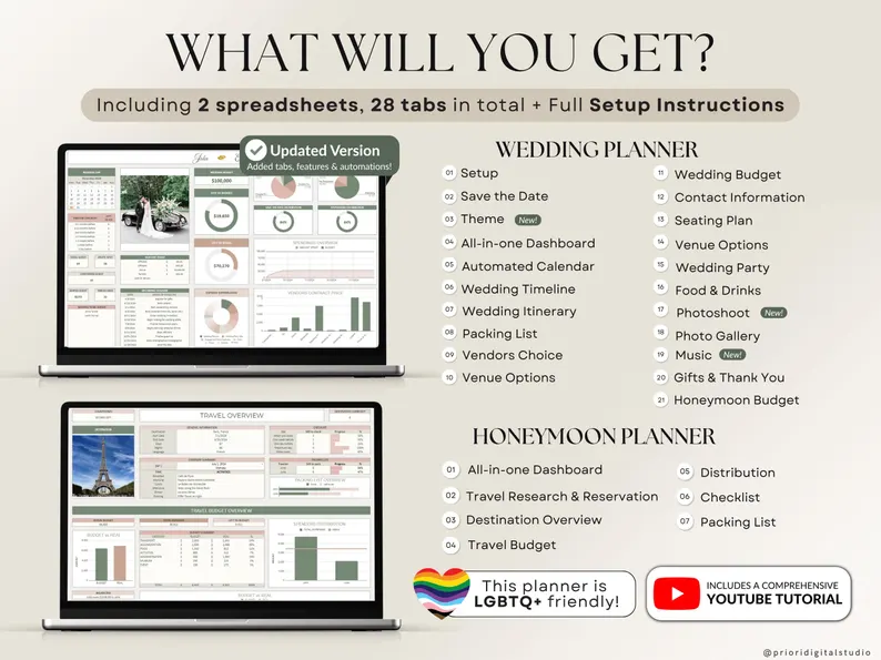 💻 Wedding Planning Spreadsheet includes 18 worksheets + complete setup instructions: