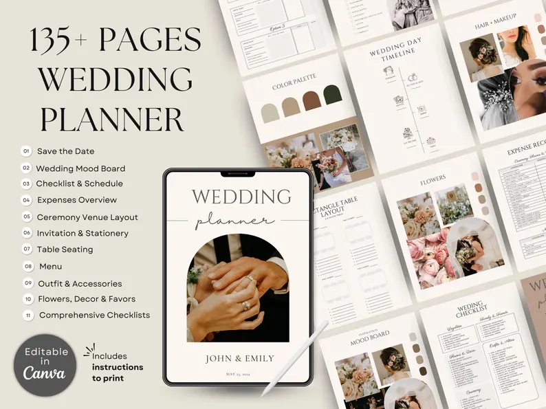 📖 Wedding Planning Canva Template includes over 135 pages: